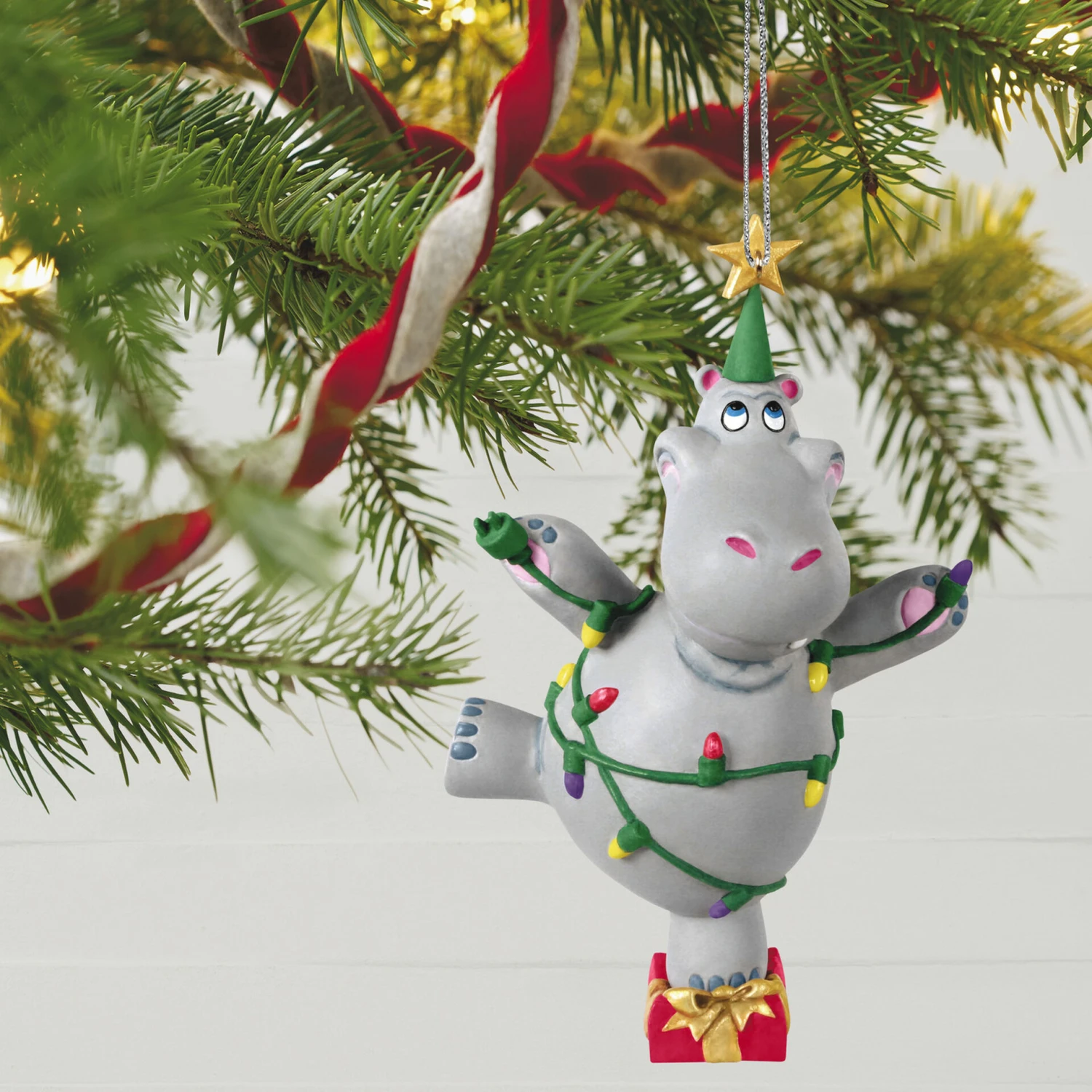 - Magic Sound Christmas tree ornament. Press the button on the ornament to hear music from “I Want a Hippopotamus for Christmas” performed by Gayla Peevey.