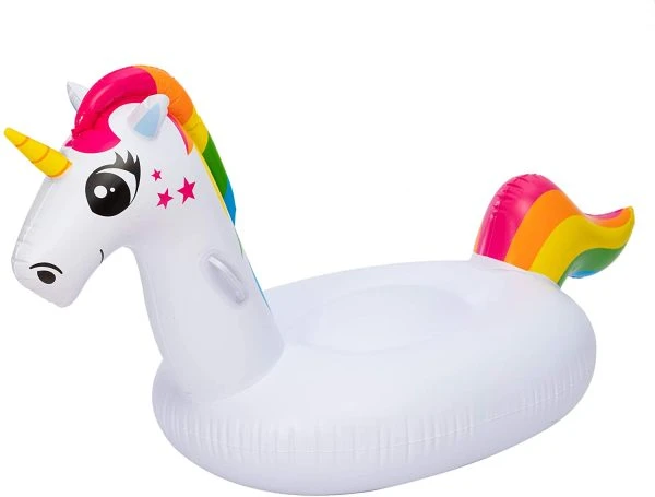 - Our great cute inflatable unicorn pool raft for children, comes with 2 handles for easy access. A magical, mystical and marvelous addition to your cool pool party.