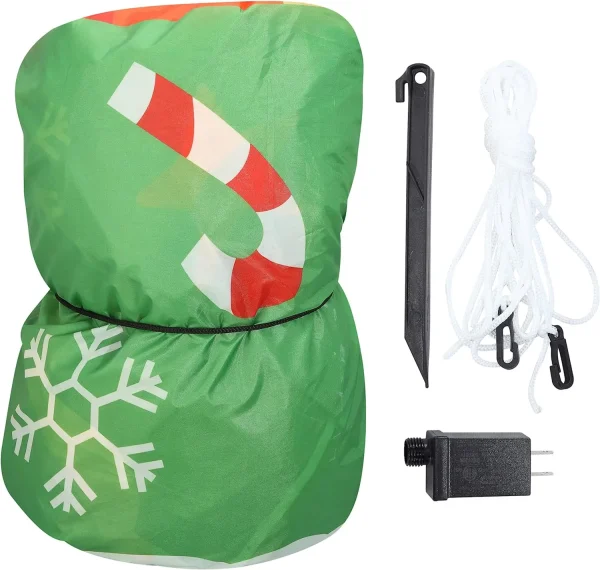 • Christmas tree inflatable includes a 6 Feet Tall Christmas Tree Inflatable and comes with an extended cord, ground stakes, fastened ropes, built-in sandbags, and a plug with UL certification.