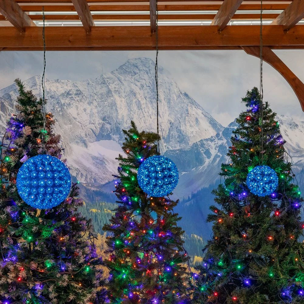 Our Blue 50 Light Starlight Sphere is our smallest and lightest sphere and is perfect for hanging in windows, porches, or trees. Each 50 light blue globe is boxed individually and comes with a 12′ stackable power cord, a hanging string for easy installation, 2 replacement bulbs and one fuse. Don’ forget to mix and match sizes and colors. The 6″ Starlight sphere is easily one of the most versatile yet unique products we sell. UL Listed for indoor or outdoor use.