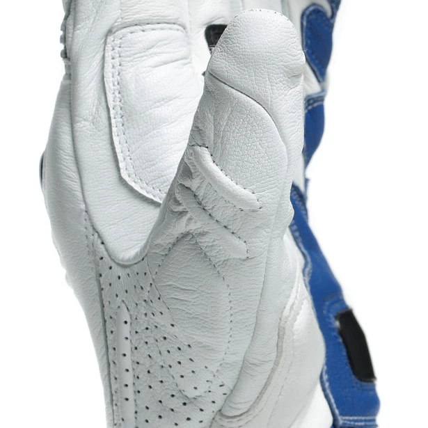 Ultimate performance is in your hands. A Dainese icon, it positions at the top of the short sports glove category. It features steel knuckles and back, as well as the DCP system and thermoplastic protectors on the little finger for unprecedented protection. Its leather construction and sheepskin palm with drum-dyed treatment ensure great comfort and increased sensitivity for perfect control and confidence when riding.