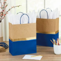 Be ready for birthdays, showers and other gift-giving occasions throughout the year with this set of 12 medium gift bags. Sturdy kraft paper bags feature a variety of bright solids and fun patterns. Hallmark medium-sized bags hold presents like small stuffed animals, video games, DVDs, books, candles and more.