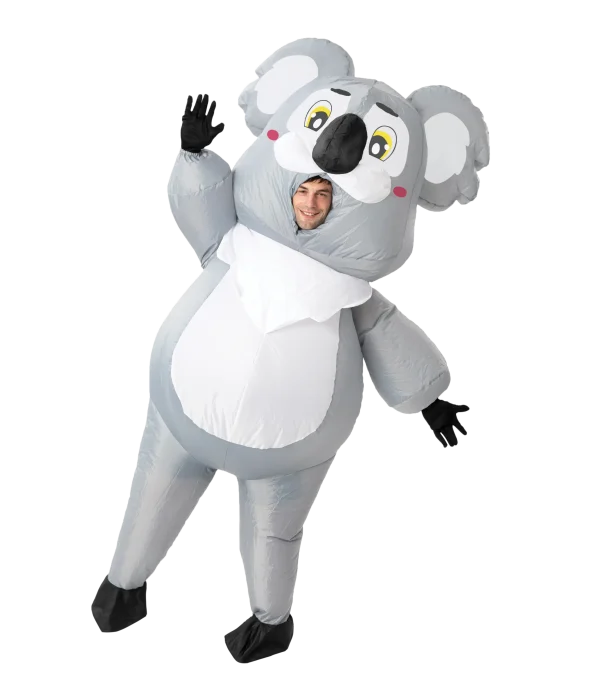 • Koala Inflatable Costume Includes Instruction Sheet, Inflatable Koala Suit, and Air Pump. Air Pump Requires Portable Power Bank or 4 AA Batteries. (Batteries Not Included)