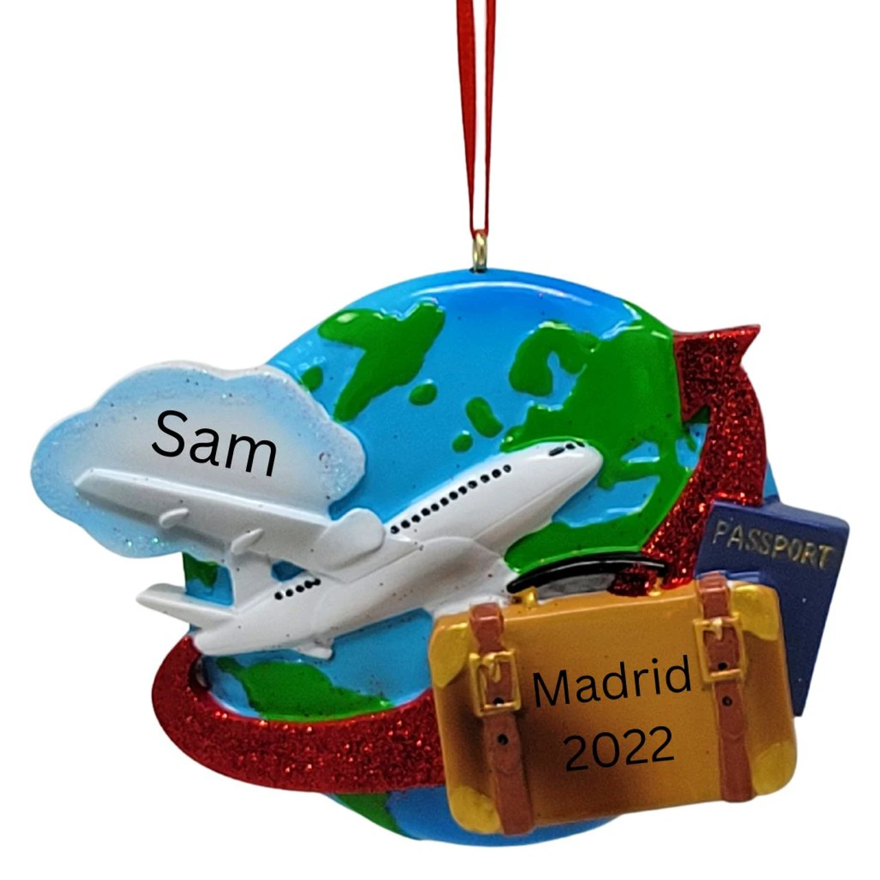 This personalized travel ornament is an amazing way to commemorate any special trip. Our talented Christmas Loft Elves will personalize this ornament with names/dates free of charge!
