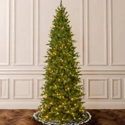 This Glen Ridge Spruce tree features the PowerConnect(TM) through-the-pole lighting system that eliminates the need for connecting multiple light strings, reducing set up time. Also featured is Feel Real® branch tip technology, creating a tree with remarkable realism. It is pre-strung with 600 clear lights that remain lit even if a bulb burns out. The slim profile of this tree may be a better fit for corners or areas with limited floor space. Hinged branch construction makes assembly quick and easy.