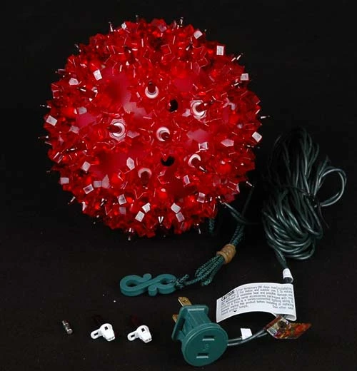 Our Red 50 Light Starlight Sphere is our smallest and lightest sphere and is perfect for hanging in windows, porches, or trees. Each 50 light Red globe is boxed individually and comes with a 12′ stackable power cord, a hanging string for easy installation, 2 replacement bulbs and one fuse. Don’ forget to mix and match sizes and colors. The 6″ Starlight sphere is easily one of the most versatile yet unique products we sell. UL Listed for indoor or outdoor use.