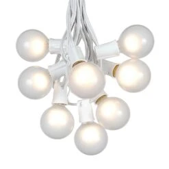 100 G50 Globe Light String Set With Frosted White Bulbs On White Wire